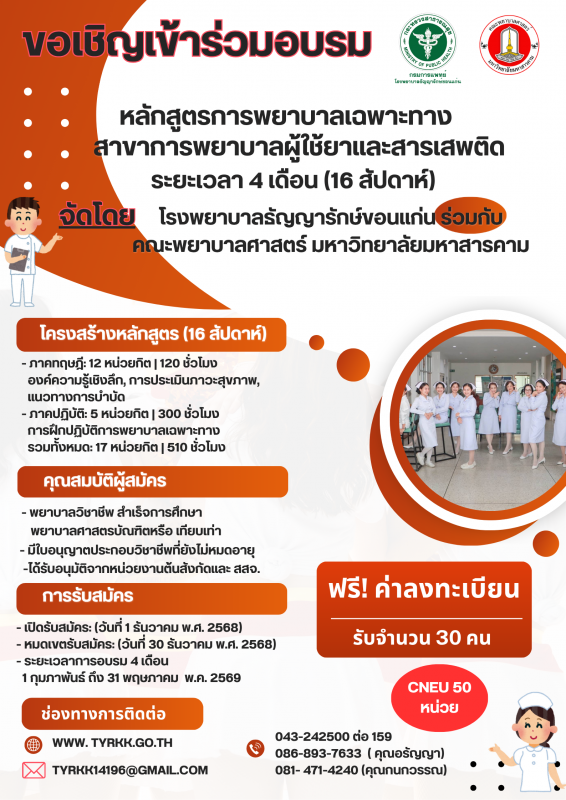 ข่าวประชาสัมพันธ์ ประชาสัมพันธ์โครงการอบรมหลักสูตรการพยาบาลเฉพาะทาง สาขาการพยาบาลผู้ใช้ยาและสารแทพติด ในเขตสุขภาพที่ ๗, ๙ และ ๑๐ หนังสือประชาสัมพันธ์เข้าร่วมหลักสูตร-การ FacebookFacebookLINELine ประกาศผู้ชนะการเสนอราคา จ้างเหมาบริการรถตู้ปรับอากาศพร้อมพนักงานขับรถ รวมน้ำมันเชื้อเพลิง ไป – กลับ จังหวัดขอนแก่น – จังหวัดกรุงเทพมหานคร ระหว่างวันที่ ๕ – ๗ พฤศจิกายน ๒๕๖๘ (๑คัน/๓วัน) จำนวน ๑ งาน โดยวิธีเฉพาะเจาะจง ประกาศโรงพยาบาลธัญญารักษ์ขอนแก่น เรื่อง ประกาศผู้ชนะการเสนอราคา ซื้อครุภัณฑ์สำนักงาน จำนวน ๓ รายการ โดยวิธีเฉพาะเจาะจง